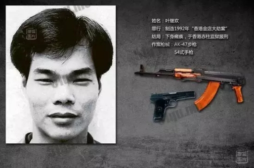 罪行:1984年行劫珠宝金行后被捕,判狱16年。1989年逃狱,1991年卷土重来,开始其疯狂乱枪扫射式的惊天大劫案,有连环劫观塘物华街五间金行、深水埗两间金行、旺角弥敦道谢瑞麟金行。1995年绑架杀害深圳商人,杀死警方线人“鸡雄”。