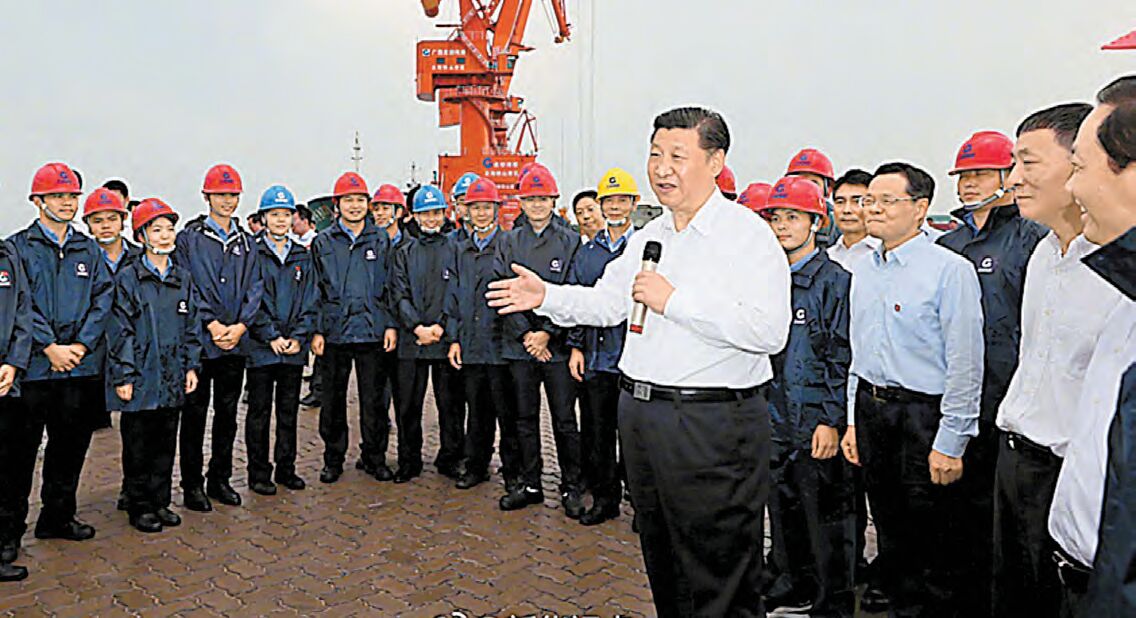 在鐵山港公用碼頭,習近平同工人們交談。他說,今天考察了合浦漢代博物館和鐵山港碼頭,這都與「一帶一路」有着重要聯繫,北海具有古代海上絲綢之路的歷史底蘊,我們現在要寫好新世紀海上絲路新篇章。「一帶一路」倡議提出3年來,國際社會廣泛響應,這是人心所向。我們要在「一帶一路」框架下推動中國大開放大開發,進而推動實現「兩個一百年」奮斗目標、實現中華民族偉大復興,攜手同心共圓中國夢。