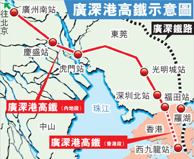 CY十分關心香港日后和大灣區多個城市(如肇慶市和江門市)怎樣進行鐵路連接。林惽解釋,廣東省內高鐵建成后,便可乘坐高鐵,經廣州南站轉到全國多個城市,亦可透過南(寧)廣(州)高鐵和正在興建的江(門)茂(名)鐵路,連接肇慶和江門。也就是說,香港市民日后可從香港西九龍高鐵站,經深圳(福田站、深圳北站)、東莞(虎門站)、廣州(慶盛站)直接抵達廣州南站,再隨高鐵網絡輻射到全國各地。
