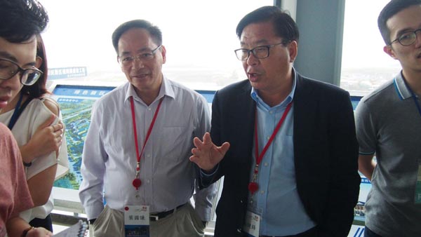 之后,考察團一行乘坐高鐵前往肇慶市。到桋后,首先到硯陽湖觀景平台參觀興建中的地盤,并聽取肇慶新區發展規劃介紹。