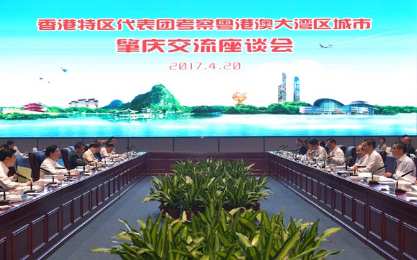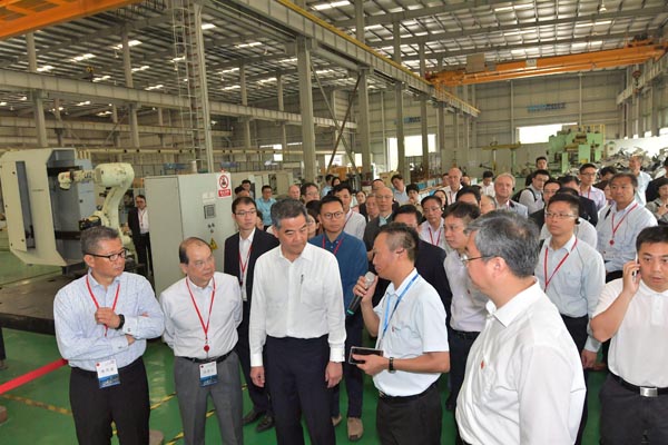 梁振英帶領的考察團一行30多人,昨日前往廣州南站參觀,再到肇慶及江門兩市了解當地的發展情况。其間,梁振英與代表團一行在佛山市與佛山市委書記魯毅及其他官員就有關粵港澳大灣區的發展交流意見,還參觀了佛山市一間應用機械人技術的制造業公司,了解當地在創新科技方面的發展。