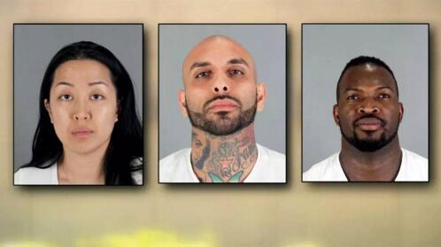 三名嫌疑人:(從左至右)蒂凡尼·李、卡威·巴亞特、奧利弗·阿德拉。