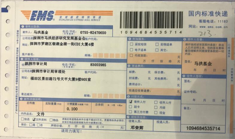 馬洪基金會向深圳政府部門寄出“依申請公開函″