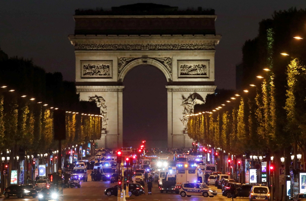 槍擊案發生後,大批警車將香榭麗舍大街及凱旋門封鎖。路透社