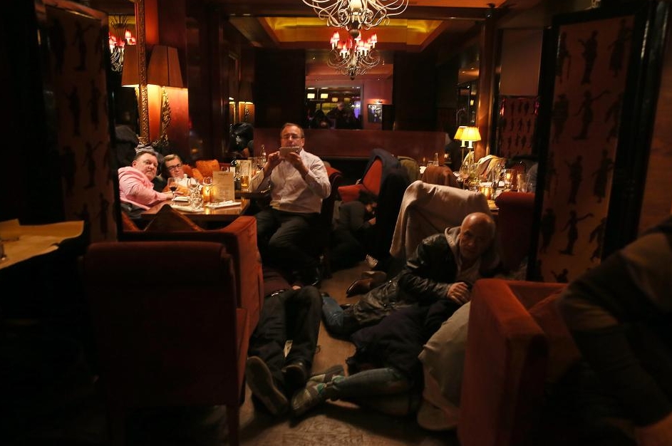 槍擊案發生時,有途人躲進香榭麗舍大街的商店裏。網絡圖片
