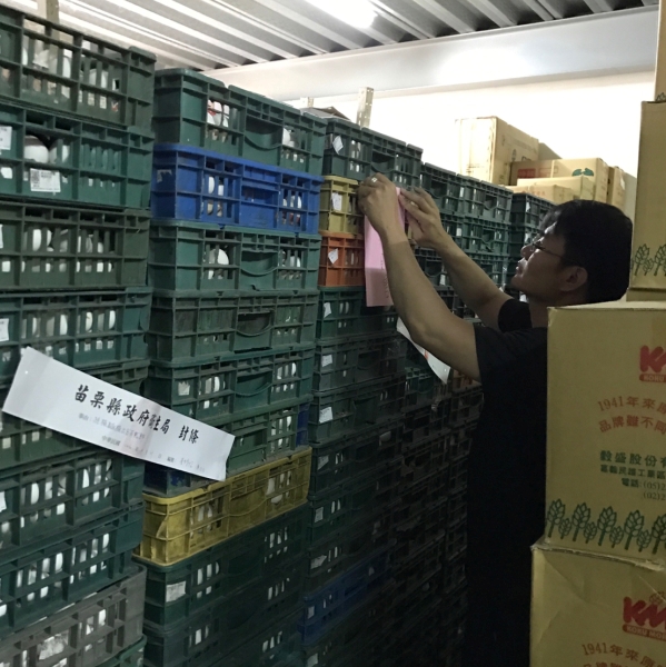 彰化縣政府衛生局昨晚表示,經查駿億、鴻彰、財源這3家蛋鸡場,全數出貨到彰化縣「王功蛋行」,王功蛋行的下游蛋商主要為苗栗縣「合成批發行」、新北市「意昌蛋行」、桃園市「立祥蛋行」、「永山蛋行」。稽查人員當天封存王功蛋行現場蛋品,共56箱鸡蛋總重量672公斤、7箱共84包液蛋總重量100.8公斤、152箱報廢蛋總重量1824公斤,合計封存215箱、2596公斤。另外,苗栗縣衛生局也從頭份市合成批發商販售鸡蛋驗出二噁英超標,封存3280台斤(一台斤等於600克)鸡蛋。