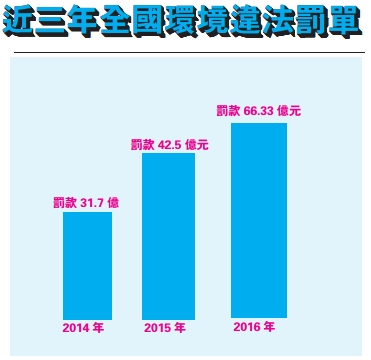 【香港商報网訊】環保部昨日透露,2016年全國共立案查處環境違法案件13.78萬件,下達行政處罰決定12.47萬份,罰沒款數額總計66.33億元,創造歷史新高。有分析指出,自新《環保法》2015年1月1日實行以來,罰款是上去了,但污染可沒降下來,希望美麗中國的建設不能只靠罰款了事。值得注意的是,中國政法大學環境資源法研究所日前發布報告指出,新《環保法》實施后,地方黨政領導對環保空前重視。