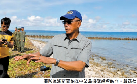 【香港商報网訊】菲律賓國防部長洛蘭薩納昨日率領軍方高層,乘坐空軍C130運輸機登上目前被菲占領的南沙島嶼中業島。有媒體指出,該運輸機在飛越南海過程中遭到中國以無線電喊話,雙方於空中相互宣示主權。就菲防長登島一事,目前中國外交部暫無回應。