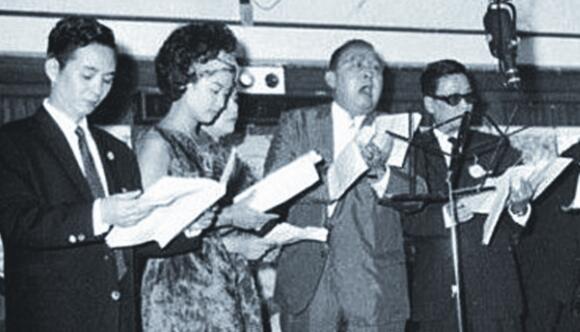 1960年代麗的呼聲一眾播音員正在錄廣播劇