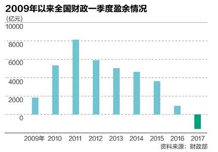 第一財經記者查閱歷史數據發現,財政部網站自2009年開始公布一季度財政收支數據,而今年一季度是首次出現財政赤字。