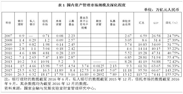 從表2的數據可以看出,2010年的時候,中國銀行的總資產是94萬億元,到2016年底是226萬億元。銀行資產擴張的速度2010年是19.86%點多,當年的M2增長速度是18.95%,二者差距不到1個百分點。但2015年之後M2與銀行總資產之間的差距在擴大,2016年商業銀行資產增長速度是16.5%,而M2只有11.33%。