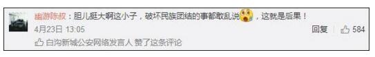 2017年4月23日,白溝新城公安分局依據《中華人民共和國治安管理處罰法》第四十七條之規定,給予陳某某行政拘留15日,并處罰款1000元處罰。陳某某對發表侮辱言論的行為表示懺悔,并對回族群眾表示歉意。