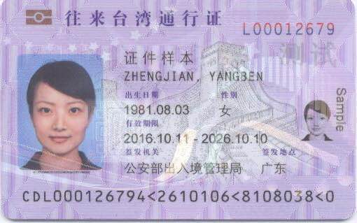 广东省警方表示,公安部近日通知,决定全面启用电子往来台湾通行证,电子往来台湾通行证为参照有关国际标准设计制作的卡式证件,内嵌非接触式集成电路芯片,前往台湾签注不再采取贴纸的方式,而是直接打印在证件背面,并可重复擦写。