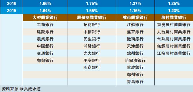 撥備覆蓋方面,城市商業銀行明顯轉弱,撥備覆蓋率由2015年的268.1%,急跌42.33個百分點,至225.77%;股份制商業銀行的撥備覆蓋率,由182.09%,下跌6.85個百分點,至175.24%。