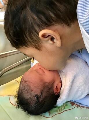 跳水皇后郭晶晶日前在養和醫院誕下一名女兒,其夫霍啟剛在微博發布其子霍中曦親吻妹妹的溫馨照。霍啟剛微博圖片