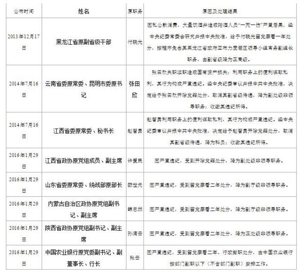 另外,據記者不完全統計,自十八大以來,至少有20名省部級以上官員遭遇斷崖式降級,“嚴重違紀”是根本原因。