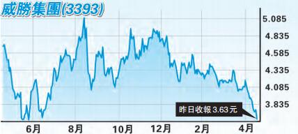 威勝股價疲弱,與其去年業績表現有關。集團去年營業額減少12%至26.1億元(人民幣,下同);毛利減9%至8.2億元,毛利率升1個百分點至31%;純利3.1億元,跌27.45%;每股盈利30分;派末期息0.24港元。雖然純利倒退,但每股派息與前年一樣,可見集團對前景有信心,不用減派息。