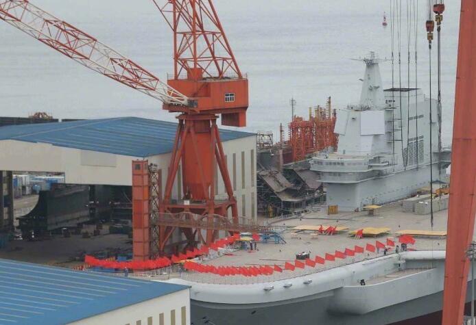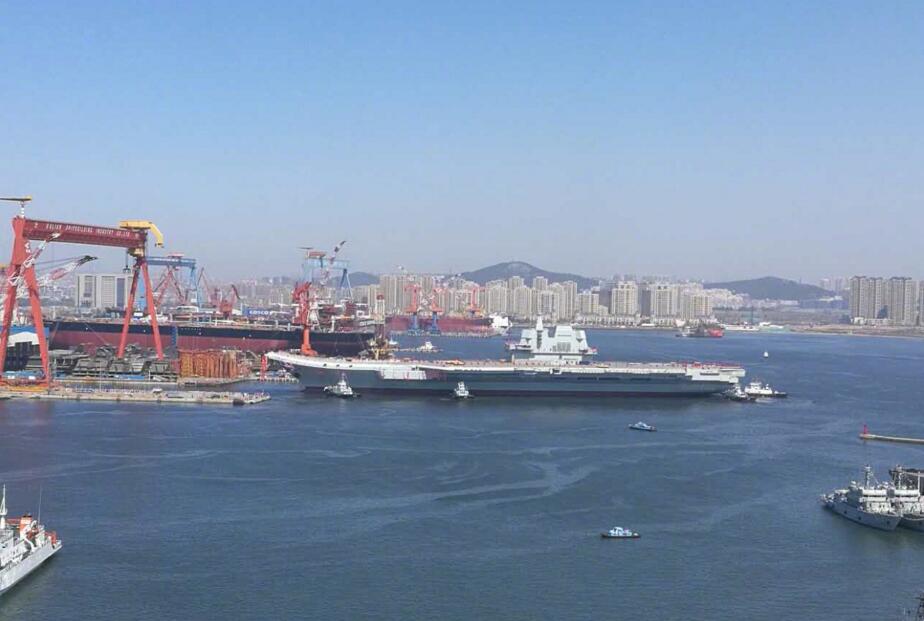 第二艘航空母艦由中國自行研制,2013年11月開工,2015年3月開始塢內建造。目前,航空母艦主船體完成建造,動力、電力等主要系統設備安裝到位。出塢下水是航空母艦建設的重大節點之一,標志著我國自主設計建造航空母艦取得重大階段性成果。下一步,該航空母艦將按計劃進行系統設備調試和舾裝施工,并全面開展系泊試驗。