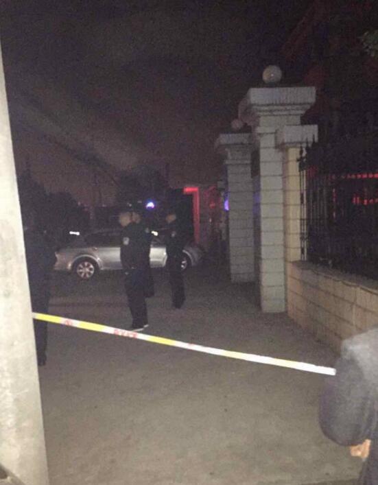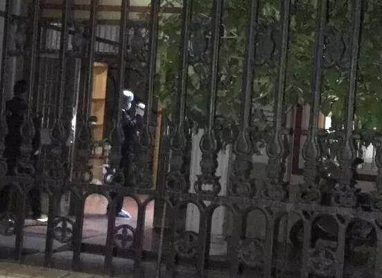 記者在現場看到,案發地停著一輛警車,別墅門口拉起長長的警戒線,緊閉的大門內,坐著兩名公安。