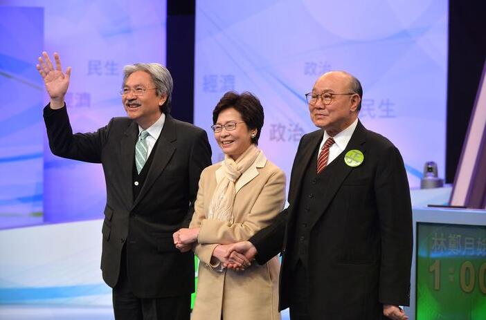 林鄭月娥最終撃敗對手曾俊華及胡國興當選特首。