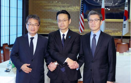 左起依次為美國朝鮮政策特別代表尹汝尚、日本亞洲大洋洲局局長金杉憲治、韓國外交部朝鮮半島和平交涉本部長金烘均