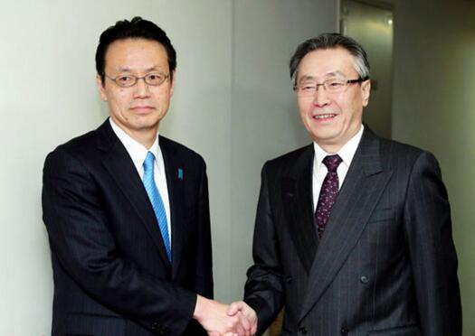 武大偉(右)與金杉憲治在日本外務省進行會談