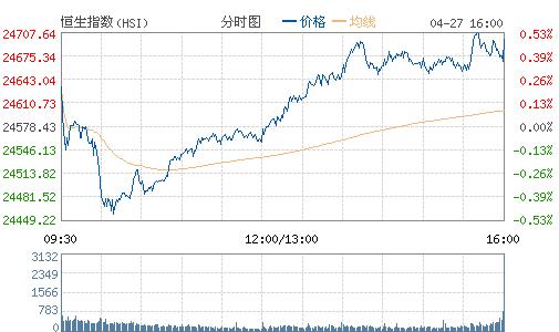 美股連續兩日急升后,隔夜三大指數微跌。美國財長努欽與特朗普經濟顧問科恩一起舉行發布會公布特朗普稅改方案,特朗普計劃實行自1986年來最大幅度的稅改,其中將聯邦企業所得稅稅率從35%下調至15%;但方案仍需經國會審議才能最終實行。港股今日期指結算,恒生指數今早高開0.34%,開盤后受內地股市下跌拖累掉頭向下,最高跌逾百點,失守24500點,低見24455點,10點半左右跌幅收窄,午后港股翻紅,最高漲逾百點,高見24704點,創2015年8月11日以來,即超過20個月高位。截至收盤,恒生指數報24698.48點,漲0.49%;國企指數報10261.25點,跌0.55%;紅籌指數報3953.09點,跌0.38%。大市成交額763.08億。