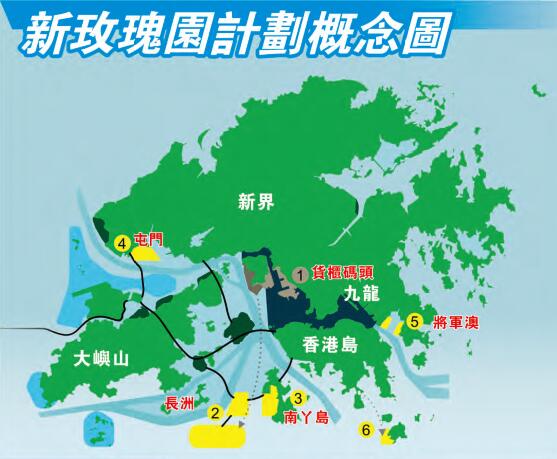 昨日,團結香港基金發表「香港2030+:跨越2030年的規劃遠景與策略」意見書,倡議政府未來推動大規模填海計劃—「新玫瑰園計劃」,包括於長洲南部填海2200公頃作碼頭作業和棕地作業發展,在南丫島西岸填海500公頃作低密度住宅發展,擴展屯門、將軍澳新市鎮分別390公頃及200公頃用作新工業及住宅發展,以及將葵涌貨櫃碼頭搬遷至長洲南、赤柱監獄搬遷至蒲臺島等,以騰出空間發展住宅及公共服務。