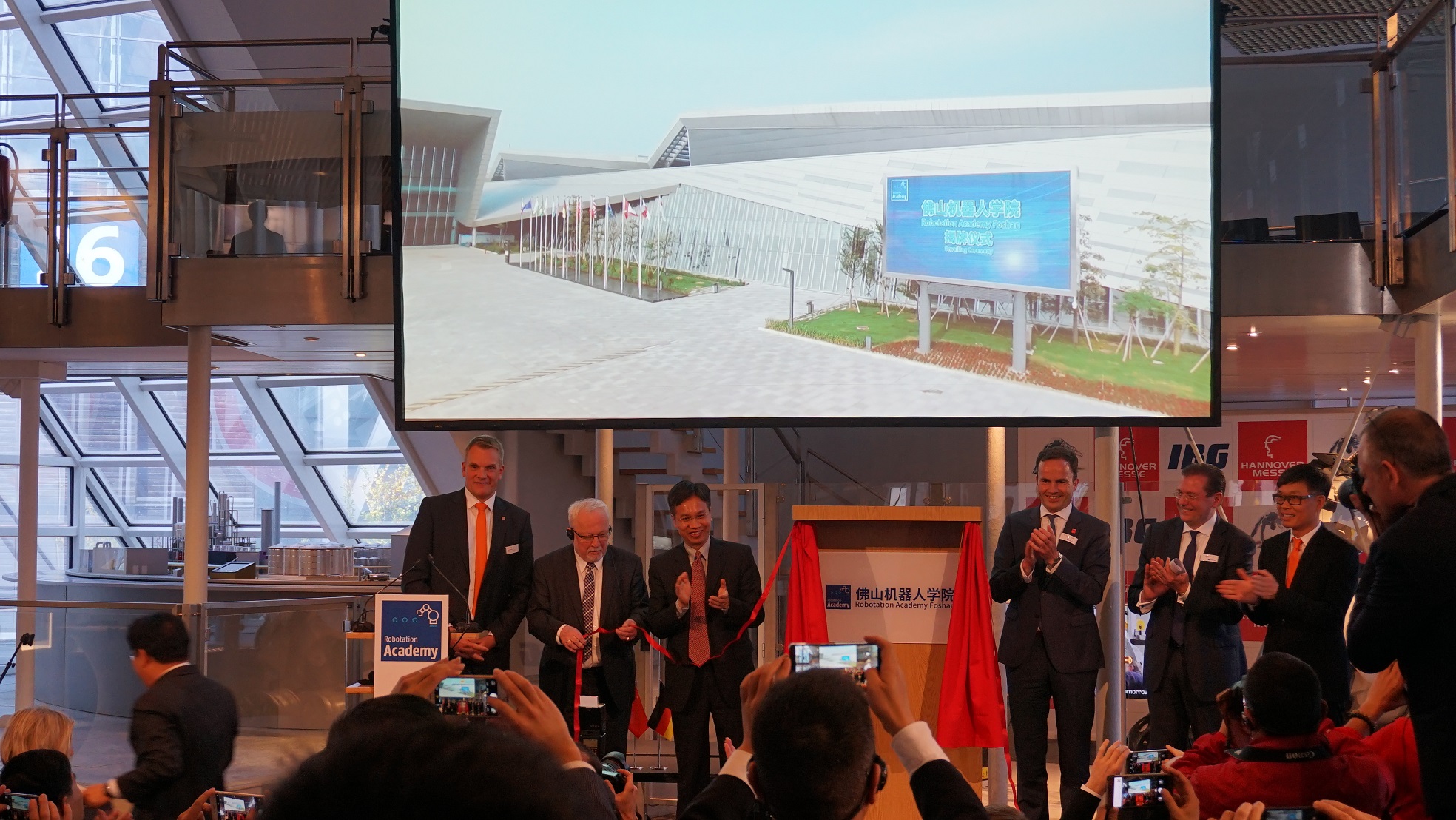 【香港商報網訊】 記者胡嘯原 通訊員陳健欣報道:日前,記者從中德工業服務區了解到,當地時間4月25日 ,在被稱為“世界第一展”的德國漢諾威工業博覽會上,“發現順德 全球路演”在漢諾威展覽館如期舉行。期間,還舉行了漢諾威機器人學院與順德合作共建佛山機器人學院的揭牌儀式以及順職院與德國亞琛工大合作項目簽約儀式。