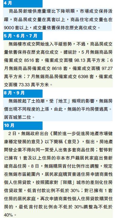 【香港商報网訊】「五一」假期期間,各地針對房地產市場仍然頻繁「出招」。據中新網昨日消息,江蘇無錫市政府辦公室28日印發了《市政府辦公室關於進一步加強商品住房價格管理的意見》(下簡稱《意見》),要求商品住房銷售前應向價格主管部門申報備案價格,價格備案后1年內不得調高。在全國此起彼伏的調控浪潮下,無錫在原有政策基礎上加強了商品住宅價格調控。有房產分析師指出,預計后續熱點城市將進入「限購」「限貸」「限價」「限售」并用的,「四限時代」。