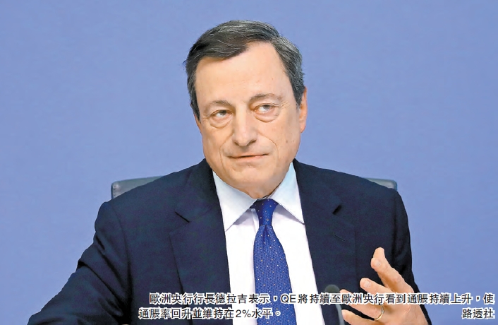 歐洲央行上周公布最新的貨幣政策決議中,一如市場預期維穩三大利率:將存款利率維持在-0.4%,主要再融資利率維持在零,邊際借貸機制利率維持在0.25%不變;也按既定計劃縮減QE規模至600億歐元/月。