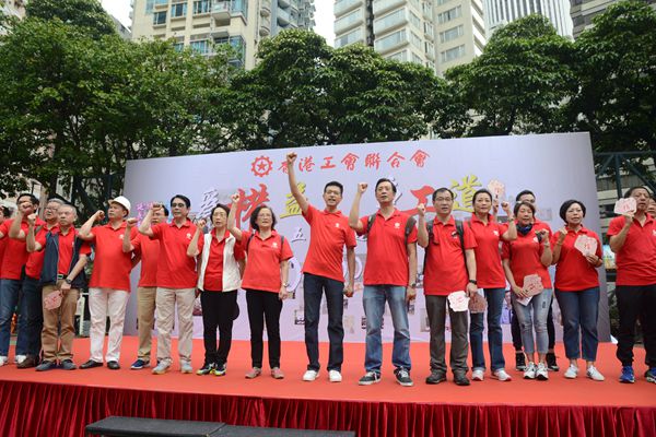 工聯會聯同多個勞團昨早在灣仔修頓球場集會,其后沿軒尼詩道游行至政府總部。參與游行人士拉起橫額,沿途高叫「為權益,爭工道」、「支持取消強積金對沖」等口號,團體要求政府盡快取消強積金對沖、統一法定公眾假期,以及檢討男士侍產假、女士產假等。據大會稱,集會及游行有逾4000人參加。