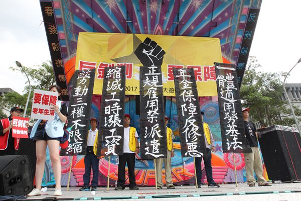 此外,「2016工斗」也完成19天的「行腳活動」,組織者說,75%的勞工年金低於2萬元新台幣、15%的勞工低於1萬元,平均每位勞工年金再加退休金僅有1.7萬元,蔡政府還推行「繳多領少」年金改革,讓勞工更沒保障。
