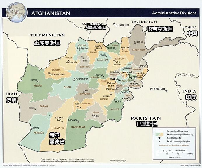 阿富汗赫爾曼德省位置示意圖