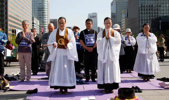 据新华国际报道,韩国一些宗教和社会团体及和平爱好者近百人4月27日聚集在首尔光化门广场静坐绝食,抗议韩美在星州部署“萨德”反导系统。