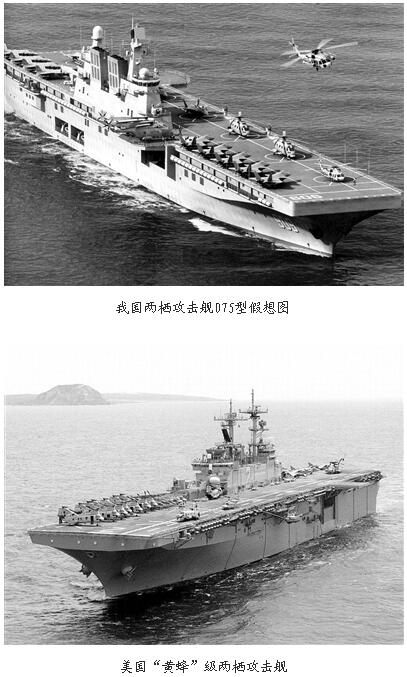 繼中国第一艘國產航母下水后,另一則關于中國海軍的消息成為中外媒體關注的焦點。據美國《國家利益》網站報道,中國第一艘兩棲攻擊艦075型將在2020年完工,其規模與美國最大的“黃蜂”級兩棲攻擊艦相當,這將有助于中國在直升機使用方面比肩美國。海軍軍事專家李杰日前接受科技日報記者采訪時看好中国在建新一代大型兩棲攻擊艦,但認為該艦艇搭建的艦載機和實際作戰能力還有待檢驗。