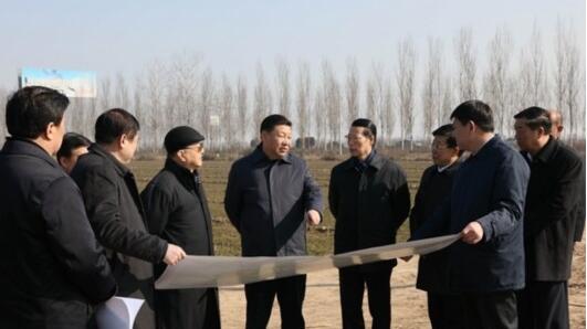 今年2月23日,中共中央總書記、國家主席、中央軍委主席習近平專程來到河北省保定市安新縣,實地察看規劃新區核心區概貌。在大王鎮的田野上,在展開的一張規劃圖前,總書記仔細察看區位、規劃狀況,詳細了解人口搬遷安置等情況。