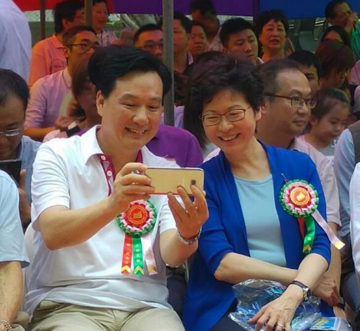 候任行政長官林鄭月娥和中聯辦副主任林武已到場預備為活動主禮,林武更邀請林鄭月娥自拍。