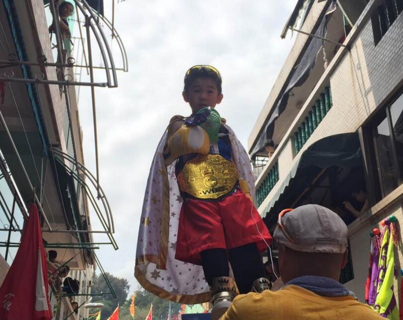 小拳王乃餅店店東的孫兒,巡經「主場」時氣氛特別高漲。(香港01记者張雅婷攝)