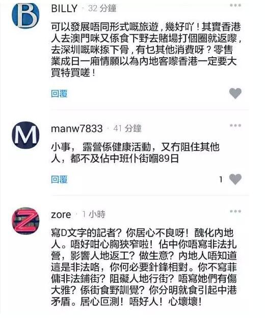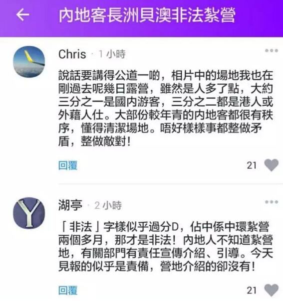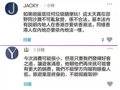 至于香港本地網友,他們大多認為,只要合法扎營,內地客來港露營并非不可接受,毋需作過度解讀: