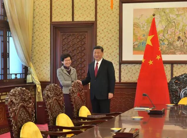 候任行政長官林鄭月娥(左)4月11日在北京獲國家主席習近平(右)接見。