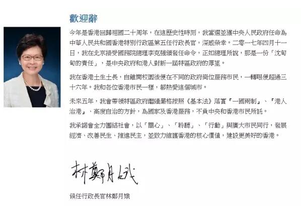 林鄭在歡迎辭中指,接受國務院總理李克強頒發任命令時,正如總理所說,這是一份“沉甸甸的責任”,是中央政府和港人對新一屆特區政府的厚望。自己在香港土生土長,離開校園后便在不同的政府崗位服務市民,一轉眼便超過三十六年,自己和各位香港市民一樣,都熱愛這個城市。