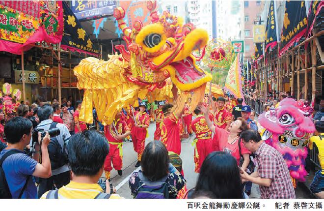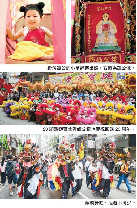 【香港商報网訊】記者萬家成報道:每年的農歷四月初八日是譚公誕,與佛誕同日,本港多座譚公廟均會舉行賀誕活動,當中以筲箕灣譚公廟所舉辦的規模最大。由香港五行小商販福利會等多個團體組成的龍獅隊和飄色隊伍,昨早在筲箕灣東大街、譚公廟道和金華街一帶盛大舉行巡游活動,吸引大批市民夾道圍觀。