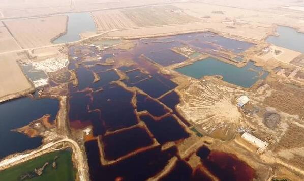 4月18日,一則《華北地區發現17萬平方米超級工業污水滲坑》引發廣泛關注。文中披露,河北廊坊大城縣和天津靜海區“潛藏”多處工業污水滲坑,最大一處達17萬平米,或已對當地地下水安全造成威脅。4月19日下午,環保部表示,將會同河北省政府立即組成聯合調查組進行調查,有關調查情況將及時向社會公開。圖為航拍的河北省廊坊市大城縣南趙扶鎮的工業污水滲坑。