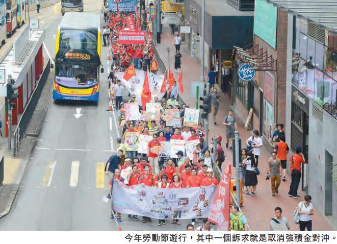 剛過去的五一國際勞動節,有多個勞工團體上街游行,表達訴求,而其中一個焦點是要求取消強積金的「對冲」。由於現時的社會氣氛,均很希望這個問題能在今屆政府任期內解決,而今屆政府任期尚餘不足兩個月,故大家都有點心焦,未知這個勞資矛盾能否及時解開,為社會和諧邁出重要一步。