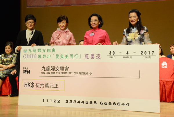 【香港商報網訊】記者曾美玲報道:九龍婦女聯會日前假香港理工大學賽馬會綜藝館舉辦CMM蒙妮坦「愛與美同行」慈善夜活動,募集社區服務和會務經費。行政長官夫人梁唐青儀、勞工及福利局局長蕭偉強、中聯辦九龍工作部部長何靖等主禮。該會首席會長鄭明明開心地表示,今次籌得善款逾470萬元,她對官、商、民各界善長仁翁的熱心捐獻和鼎力支持致以衷心感謝。