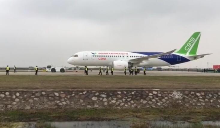 據商飛集團介紹,今天13:45左右 ,C919首飛儀式在跑道東側未啟用滑行道上舉行,國務院副總理馬凱出席了首飛儀式。儀式結束后,于14:00左右起飛前往南通附近空域試飛約90分鐘,完成后返回浦東機場,在同一條跑道落地。