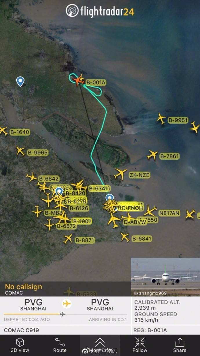 【15:04】C919已回到崇明上空,還有20分鐘抵達浦東。