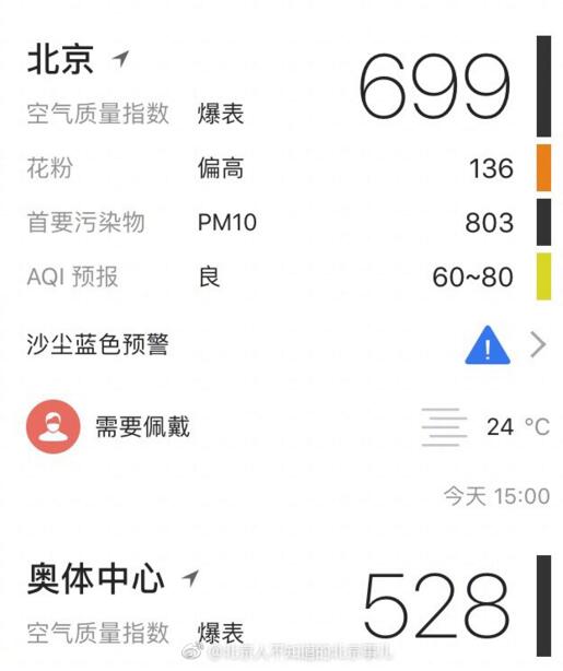 昨天下午,北京當地網友爆料稱:“北京奧體中心,一輛空氣凈化車對著一個空氣監測站一直噴。這是數據造假么?”并配發三張現場圖,以及一張空氣質量的數據截圖。數據顯示,北京空氣質量指數699,爆表;而奧體中心該指數為528,也是爆表。博主表示“然并卵。。。 ”