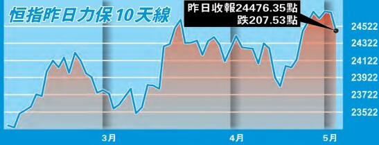 踏入5月份首周,大市氣氛較為平靜,恒指於周二高開158點,創下恒指近20個月來的高位,其後升幅收窄,更一度倒跌至24577點,最後回穩並於24696點報收,升81點,當日成交額稍為下降至近696億元。